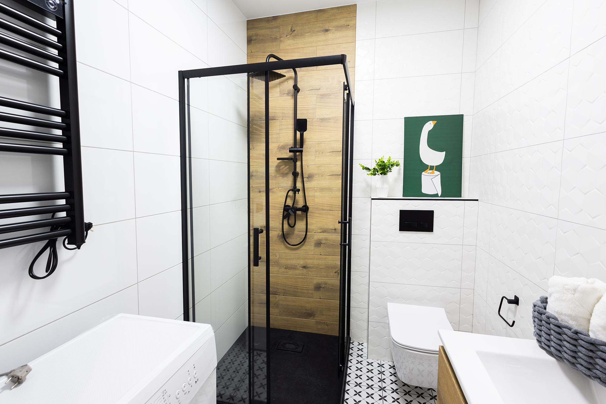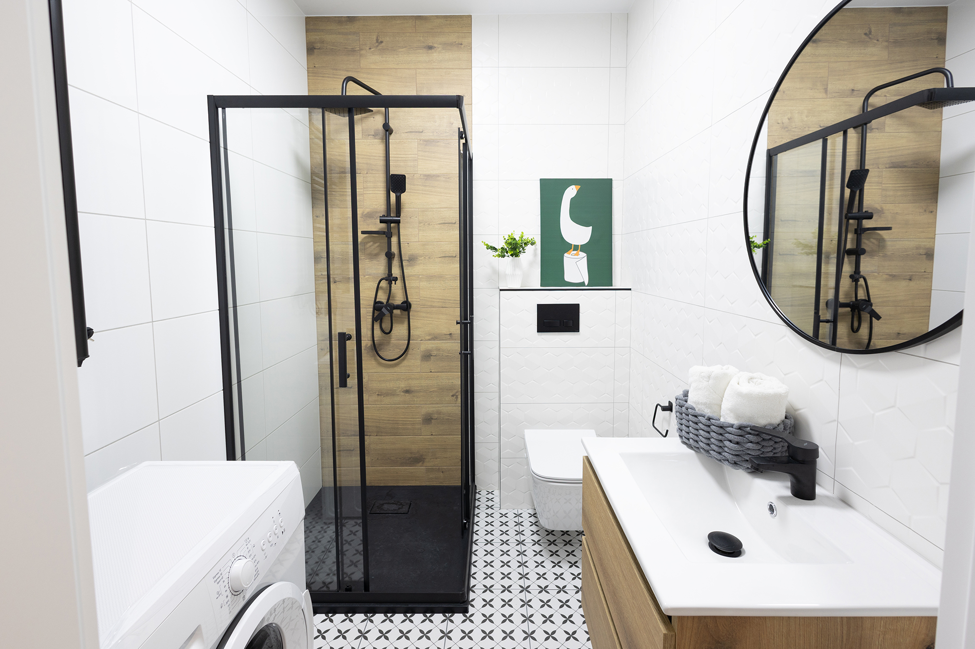 pralka, prysznic, lustro