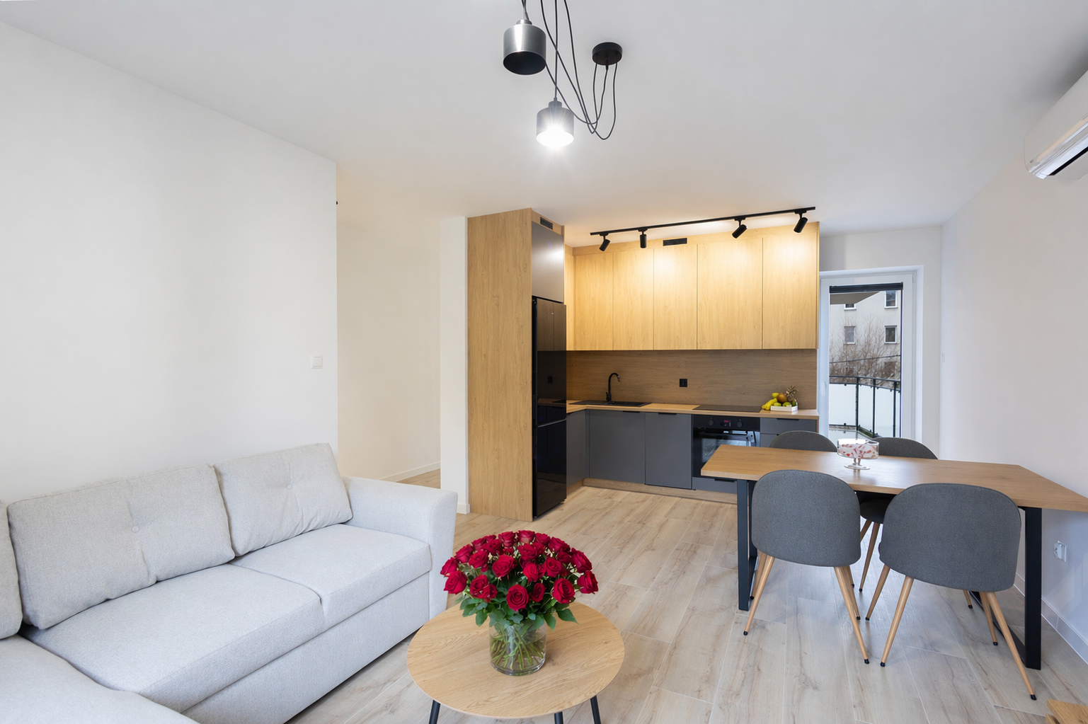 • Otwarta przestrzeń łącząca salon z kuchnią, sprzyjająca integracji i wspólnym chwilom z bliskimi